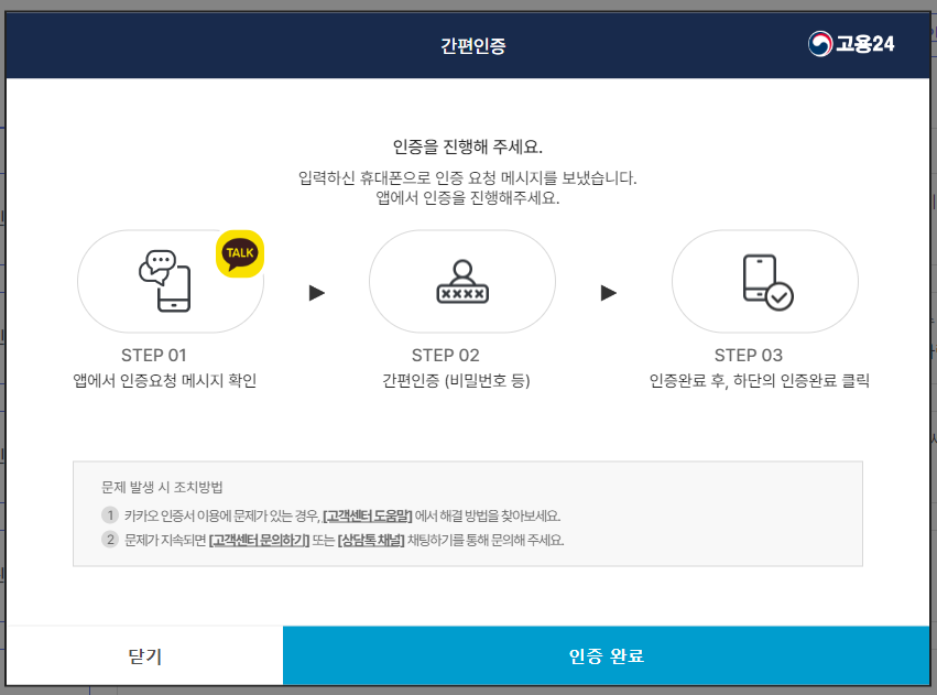 3. 간편 로그인 클릭 하시고 차례로 개인정보 입력하시고 인증요청, 완료 합니다.