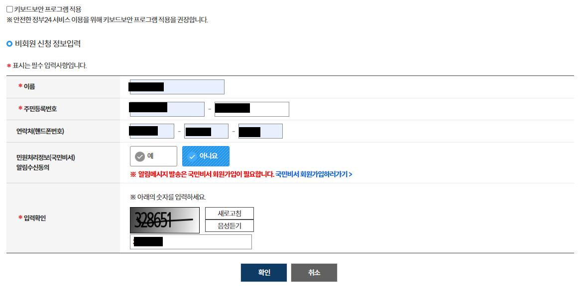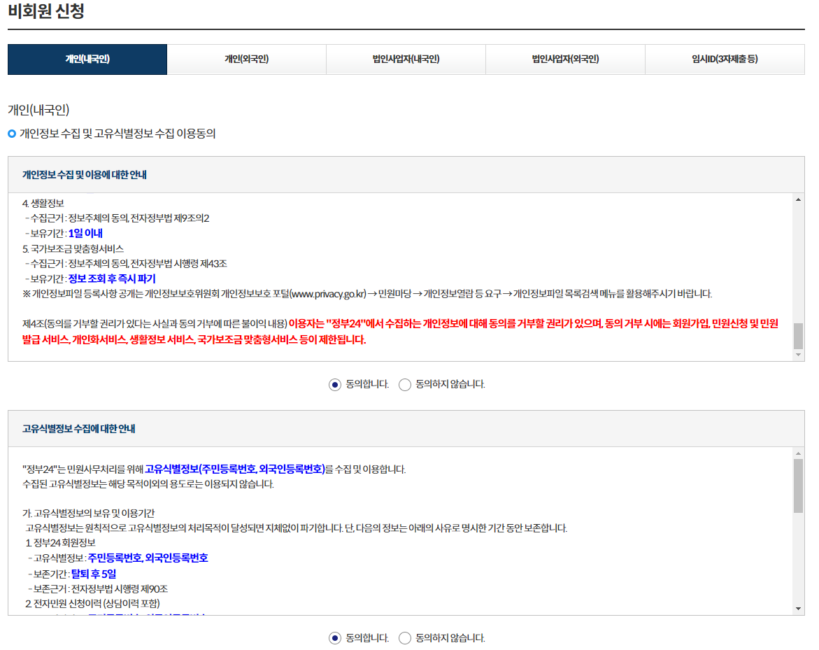 개인정보 수집 동의 하시고, 정보 입력 하십니다.