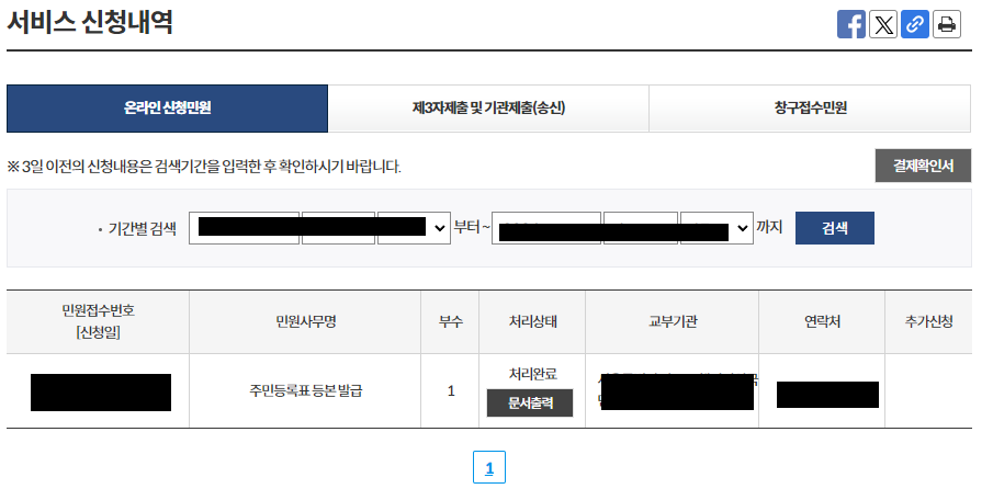 이 화면에서 문서출력 하시면 간단하게 발급받으실 수 있습니다.