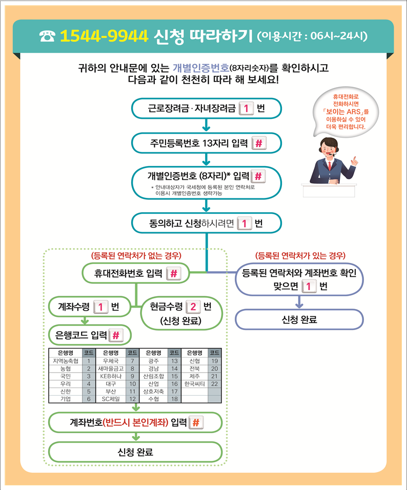 1. ARS 전화로 간단하게 신청하실 수 있습니다. (1544-9944)