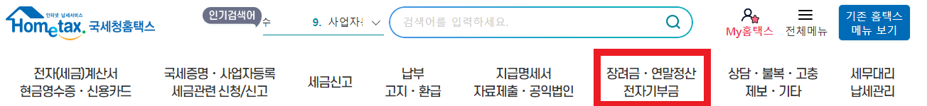 -3. 우측 상단 장려금, 연말정산, 전자기부금 클릭